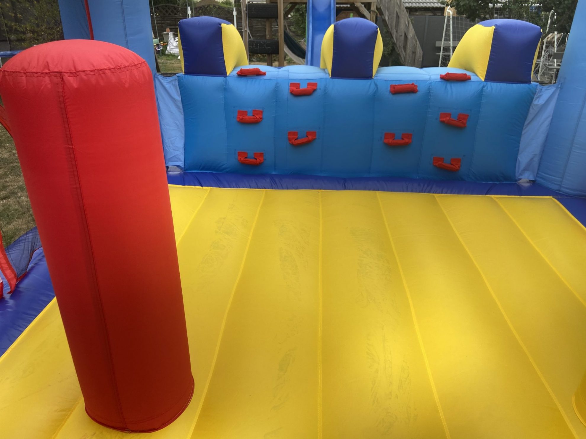 Unsere "Hoppeborg Prcours Hüpfburg" ist eine schöne Alternative zu der klassischen Hüpfburg wie die "Super Castle XL". Sie zählt zu der Kategorie Action und Spaß bei Kindergeburtstagen, Hochzeiten und sonstigen Feiern. Es ist eine Art Hindernissbahn mit Rutsche als Abschluss.