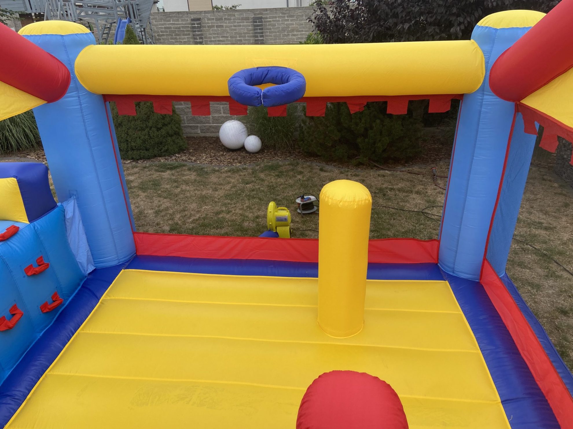 Unsere "MiniCastle " von HappyHop ist eine schöne kleine Hüpfburg, die ähnlich wie die klassische Hüpfburg "Super Castle XL" ist (nur eben kleiner!). Sie hat eine kleine Rutsche und ist nach oben hin offen. Sie ist für Kinder ab 3 Jahren. Bei weinig Platz ist das unser Raumwunder für Spaß und Action.